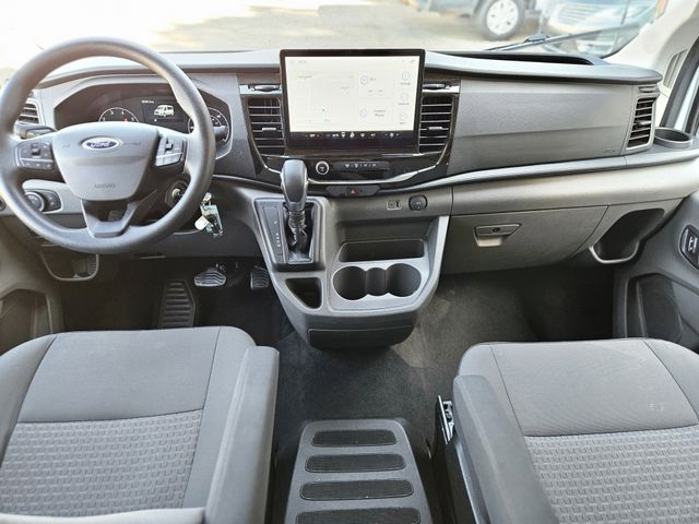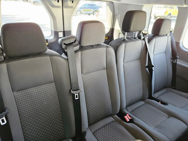 The roomy interior of the Transit-350 XLT offers ample space for passengers and cargo, with seating for up to 15 and a versatile third-row bench. Thoughtful touches like the large center console and power windows ensure a comfortable and convenient driving experience.