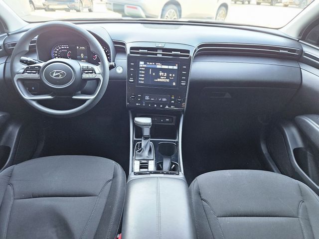 The Tucson SEL's exterior is defined by a sleek, modern design that commands attention on the road. The Silver finish exudes a sophisticated and timeless appeal, while the integrated roof rails and rear spoiler add a touch of sporty flair. Step inside and you'll be greeted by a spacious and well-appointed cabin, featuring premium Stain & Odor Resistant Cloth Seat Trim and a host of advanced technology features, including a state-of-the-art infotainment system with Apple CarPlay and Android Auto integration.